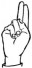 На ћирилици написано МОМЧИЛО КРГА састоји се из 11 слова [?]. Исписано ћириличном једноручном азбуком за глувонеме: